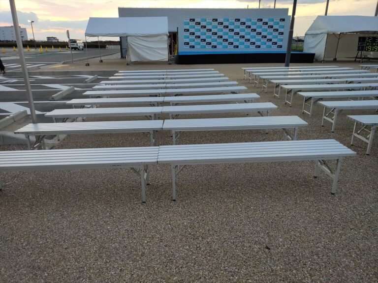 みなさん、こんにちは!福岡支店のひらのです!もうすぐGW!イベント主催者様も準備は済まれましたか!まだまだご相談お待ちしております!そんな今回は、客席を増やすため、休憩用に、などの用途でご使用いただきやすいベンチをご紹介します! アルミベンチ CHE-043E サイズ 幅1,800×奥410×高40 […]