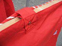 これはテントのパイプに紐で固定してあります。夏場は日除けにもなるので便利ですね!