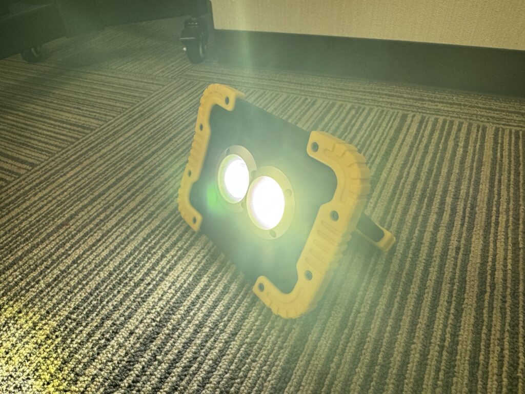 屋外イベントや夜間作業、キャンプや防災現場など、「ちょっとした明かりが欲しい」「電源の取りづらい場所で照らしたい」というシーン、意外と多いですよね?そんな時に活躍するのが、ポータブル投光器です!